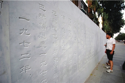 昨天下午,記者看到碑文還有多處缺少標(biāo)點(diǎn)、錯(cuò)字及語(yǔ)序不通的錯(cuò)誤。科學(xué)碑尾部刻有“中國(guó)科學(xué)院行政管理局”、“中關(guān)村街道辦事處”、“二零零八年五月一日”字樣。