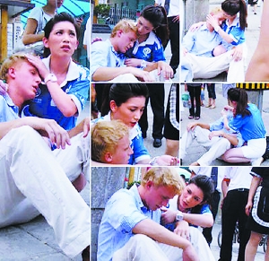 8月11日,一位網(wǎng)友在某論壇里發(fā)了個名為《我拍到最美的奧運(yùn)志愿者美眉》的帖子,并附有多張現(xiàn)場照片。發(fā)帖人描述說:當(dāng)時一金發(fā)碧眼的老外走得挺慢,我沒怎么注意。一回頭那老外坐地下了,耷拉著個腦袋。旁人圍了過來,議論說可能是中暑了,這會兒過來一漂亮美眉,還是個奧運(yùn)志愿者,又是摸頭又是詢問的。老外當(dāng)時瞳孔放大,很嚇人的樣子!美眉看樣子也有點發(fā)懵,不過很快就指揮大伙打電話什么的……周圍還有人拿出風(fēng)油精,附近飯館經(jīng)理服務(wù)員全來了,還幫忙倒水。那志愿者美眉,我估計還有點兒經(jīng)驗,又掐人中又揉太陽穴地折騰半天,可把她急壞了……隨后志愿者美眉用英文問清老外的住址后要送老外回去,估計怕老外走半道再犯了啥的,旁邊大家都夸她,人家還挺低調(diào)扶著老外就走了。