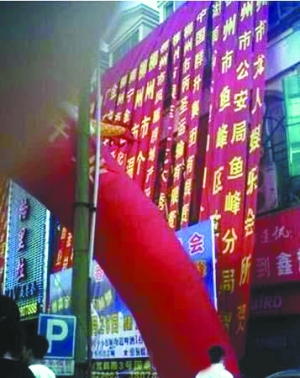 9月3日,柳州魚峰公安分局局長黃永高介紹,他們沒有參與祝賀,那是商家的擅自行為,發(fā)現(xiàn)條幅的第二天就讓商家撤下。