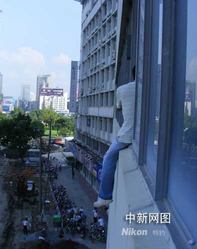 中新網寧波9月8日電(何蔣勇 周旭靜)今天下午14時許,位于浙江省寧波市東門口新華聯商廈三樓女廁的窗臺上爬出一男子欲跳樓,經過多部門半個多小時的營救,成功將男子救出。