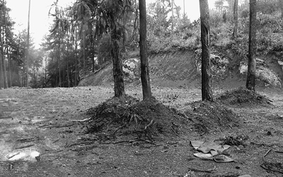 福海生態(tài)園建設(shè)需遷一片墳?zāi)梗凑铡顿F州省殯葬管理條例》,林區(qū)內(nèi)選址遷移墳?zāi)梗坏谜加昧值亍⒏兀F州省林科院、福海公司不管相關(guān)部門的處理意見,未辦理占用林地手續(xù),由福海公司出錢出人,將部分樹木園內(nèi)墳?zāi)惯w往林科院瞭望臺附近林區(qū)內(nèi),經(jīng)司法鑒定,墓地地面大部分被水泥硬化,灌木及地被全遭毀壞,非法占用用材林地7.79畝。
