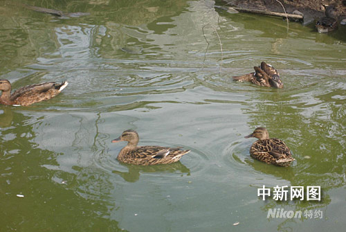 野禽在李繼英家菜園的池塘里嬉戲。作者 蒼雁