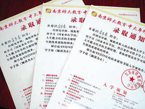 昨天上午10點多,淮安市吳承恩中學年過五旬的副校長李步春,接連收到了學校收發室送來的三封快件,竟是南京同一所大學寄來同樣內容的3封大學錄取通知書。