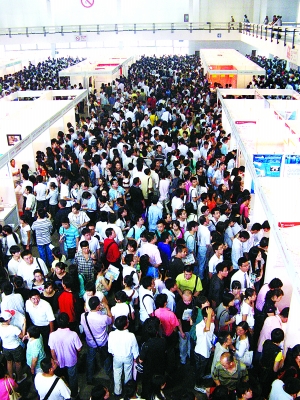 北京奧運會后首場大型綜合招聘會昨天下午在國展結束,此次招聘會參展的600家用人單位提供了5000余個職位。招聘會吸引了數萬名應聘者,這其中就包括了眾多不久前服務北京奧運的志愿者。