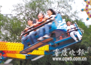今年國慶假期,在渝工作的凌澤坤和余方明把各自父母從四川隆昌接到重慶。9月29日下午,凌澤坤和父母、同事以及余方明一家共8人,來到市動物園游樂場,準備體驗一把“極速變變變”。家長們留下幫忙拍照。4個年輕人坐上游藝機,游藝機啟動后,先水平方向轉了一圈,然后開始升降交替。