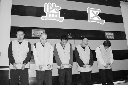 昨日,記者在未央?yún)^(qū)看守所見到了5名嫌犯。嫌犯王某對記者說,“對不起受害人。大家千萬不要像我一樣,要走正道賺錢!蹦壳,王某等5名嫌犯已被警方刑拘,而在逃的仝某警方正在追捕中。警方希望知情者積極提供破案線索。舉報電話:029—86713172。(文/圖 記者 張小乙 實(shí)習(xí)生 王婷 袁勝娟)