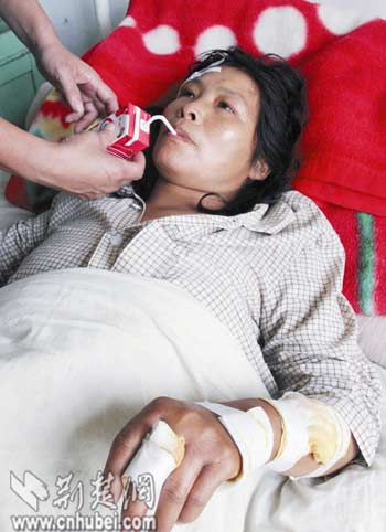 昨日,記者在新洲區(qū)陽邏衛(wèi)生院見到,傷者魏秀林(女,44歲)的頭部、胸腹部、背部和四肢有十余處傷口,其中最長的達15厘米。
