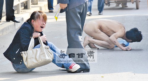 10月21日上午10時28分,在(蘭州)東方紅廣場至廣場西口一帶,一名30多歲渾身赤裸的瘋癲男子一會追逐過往行人,一會追逐駛過的車輛,一名年輕女子在遭其騷擾后嚇得失聲大哭。直到上午11時許,廣武門派出所民警接警趕到現(xiàn)場后,這一出鬧劇才得以收場。
