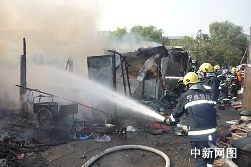 據悉,著火區域位于居住區的中央位置,火勢正向周圍的棚戶房及鄰近的廢品貨存倉庫蔓延,更為危險的是,火場中到處可見正在噴火燃燒的煤氣瓶,一旦這些煤氣罐爆炸燃燒,后果將不堪設想。