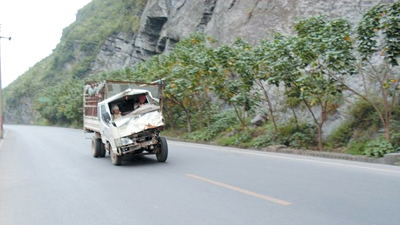 從來沒有看到過這么“牛”的駕駛員:國道319涪陵至武隆段,一輛剛剛被撞成“歪嘴”的貨車,以每小時四十至五十公里的速度行駛了20多公里!昨天,網友將最強悍司機開“腦殘車”的照片發到網上。