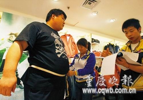 “別人的目光及肥胖帶來的不便,我已經習慣,就是衣服問題成了我最頭疼的事。”王杰郁悶地說,他以前的衣服是在老家找裁縫定做的,來渝只帶了三套單衣褲,這幾天氣溫驟降,他連續跑了5天,足跡遍及主城各大商圈,但仍未買到一件合適衣服。而以前的秋冬,他都是將買來的特大號秋衣秋褲剪破穿在里面,“可現在我要幫老板跑業務,衣著太破爛不行。”