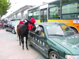“咦,快看呀!這輛車后面跟著兩頭驢!”“怪事,驢子怎么能到大馬路上逛街呀?”昨天下午4點(diǎn)多,經(jīng)過(guò)江寧竹山路一帶的市民驚奇地發(fā)現(xiàn),兩頭毛驢拴在一輛緩緩行駛的轎車兩側(cè),這一奇怪的組合吸引了眾多路人的目光。