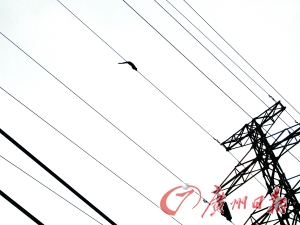 上午9時,記者接到報料來到新源糧油批發市場。在新源糧油批發市場附近,一條高壓線路貫穿東西,50多米高的高壓電塔每百米矗立一座,沿江南一路向東延伸。抬眼望去,一只果子貍正在“高空行走”。