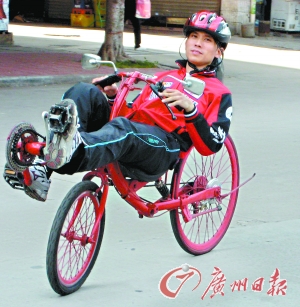坐著騎的自行車滿街都是,躺著騎的自行車你見過嗎?家住廣州芳村、在番禺大石鎮上班的洪偉勝就有一輛這樣的車。
