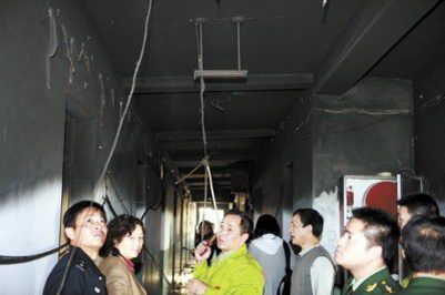 11月14日,上海商學院宿舍樓6層的大部分樓道被大火熏黑