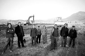 昨日下午,40余名松樹峪村村民守在村東口的修路工地里,阻止推土機掘土施工,數(shù)輛施工機器停在工地由工人看守。被推平的土地寬20余米,兩側(cè)的莊稼地里還留著連片的秸稈。