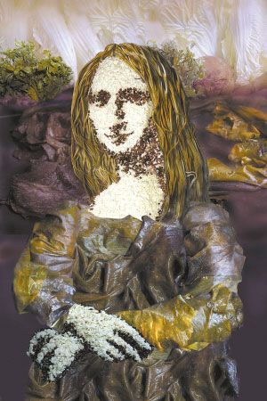 《蒙娜麗莎》、《最后的晚餐》……這些世界名畫早已被人們耳熟能詳。但最近,這些真跡卻遭到了一位重慶美女藝術家的逼真“克隆”,而她采用的材料不是畫筆,是土豆、生姜、番茄等各類在菜市場隨處可見的蔬菜。日前,畢業于川美的桔多淇和她的作品在國內藝術市場逐漸躥紅,其創作的“豆腐蒙娜麗莎”、“姜人之最后的晚餐”已經賣到了2萬元的高價。但這樣一幅作品的創作成本不到10元。