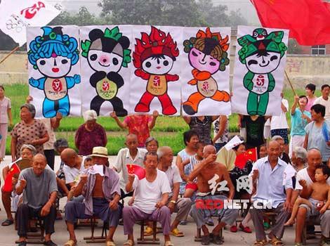 7月28日,在河南省輝縣一小山村也舉辦了一場(chǎng)別開(kāi)生面的鄉(xiāng)村版“奧運(yùn)圣火傳遞”。簡(jiǎn)樸的村民們手拿自制的簡(jiǎn)易火炬互相傳遞,神情欣喜。事件被網(wǎng)友拍下上傳到網(wǎng)上,無(wú)數(shù)網(wǎng)友投來(lái)贊許的“頂”字,并為這種充滿濃厚鄉(xiāng)土氣息的奧運(yùn)激情所感動(dòng)、折服。