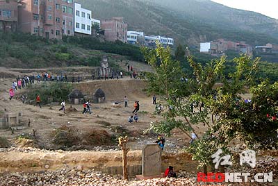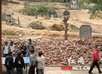 這所學校的張校長感到挺無奈,原來,由于占地40畝的新操場明年才能建成投入使用,為了不耽誤學生的體育課,因此臨時啟用了這片空地作為操場,這塊空地,是打算用來修教師宿舍的,因為按當地習俗,墳只能在農歷二十四節的“大寒”期間才可動遷,因此,這些還未遷走的墳墓最也要等到明年1月下旬才能遷走。