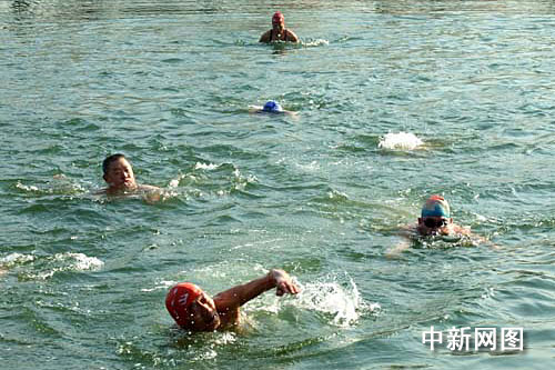 中新網濟南1月1日電(記者 張榮容 見習記者 趙金鵬)2009年的第一天,全國第二屆冬泳大賽在山東省城濟南大明湖景區內舉行。來自北京、天津、山東濟南、東營、濱州等省市的17支代表隊116名冬泳愛好者相聚濟南大明湖畔,不畏零下8攝氏度的嚴寒,以冬泳的方式迎接新一年的開始。