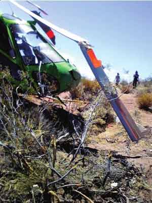 在第4賽段,央視的直升機對盧寧軍的賽車進行跟蹤航拍,結果直升機在30米高空中突然出現故障,飛機呈自由落體墜地,當時工作人員迅速上前解救,幫助航拍的記者逃離了飛機。飛機墜地后,后翼和螺旋槳都已經損壞,萬幸的是沒有人員傷亡。