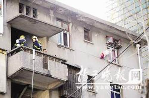 昨天下午2點半鐘左右,在南京下關區鐵路北街新民村33號住宅樓前圍了許多群眾,警方在通往居民樓的通道外拉起了警戒線,禁止無關人員進入,在警戒線內的地上放著一瓶液化氣,此時消防隊員仍在來回穿梭地忙碌著。住在四樓的一位居民稱,著火的是6樓的一戶人家,好像是有人縱火。如果不是5樓的一位大媽及時發現大聲喊叫,大家還都不知道。