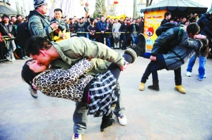 身邊的對手相繼落地,4號先生還在堅持。當主持人宣布他是唯一還沒倒下的人時,他仍鉚著勁站了一會兒!八娴耐Τ恋!狈畔屡,4號先生重重地喘了口氣,女友則給了他一個大大的擁抱。這對4號情侶最終贏得了一部摩托羅拉手機!笆謾C送給女朋友,當做情人節禮物!4號先生摟著女友,大聲地宣布。(記者王卡拉 實習生魏楠)