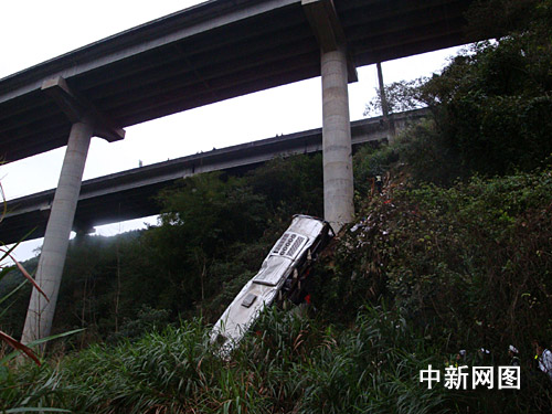 據(jù)韶關(guān)市交警部門通報,二月二十八日上午,河南省鄭州市一輛掛豫R三八五二二號牌的雙層臥鋪大客車,從河南省南陽市搭載乘客四十三人前往東莞,三月一日凌晨三時四十六分,途經(jīng)京珠高速公路粵北段南行七十九公里+二百米處時,遇見前方路面情況,采取制動及避讓措施時,碰撞左側(cè)約零點六米高護欄后,沖出高架路外,掉下約五十米深山溝,所幸在半坡處被巨大的橋柱擋了一下,才未跌落谷底。