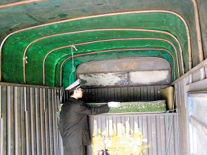 執法人員進一步檢查,驚奇地發現該貨車車廂改裝成了一個小鐵屋,車廂內設有3張席夢思改裝成的6個臥鋪座位。