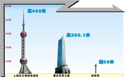 長江重慶航道局人士稱,目前,國內(nèi)已建成的內(nèi)河最高塔在揚州,高66.9米。建這個塔的首要目的是導航,因為三峽水位上漲后,目前庫區(qū)最高的導航塔只有15米,已不能適應導航之需。在重慶兩江交匯處建設超68米的高塔,可滿足江面導航需要,不是為了追求形象。