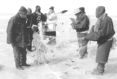 但是,在冬季,村民們可以騎著摩托車到冰面上收繳漁網(wǎng),如今湖面已經(jīng)慢慢解凍,收網(wǎng)變得越來越危險。村民們看著湖面上千張的漁網(wǎng),真的只有無奈地“望網(wǎng)興嘆”了。用他們的話說,“每天不吃飯,收都收不完”。