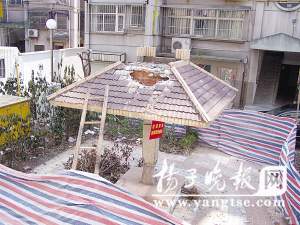 記者在該小區(qū)看到,一架爬梯搭在涼亭頂部,廢磚石塊散落一地,周圍用帆布圍起來,涼亭頂部露出兩個(gè)直徑約一米寬的大窟窿,柱子底部已經(jīng)被人鑿出凹面。該小區(qū)物管公司負(fù)責(zé)人對(duì)記者說,涼亭是上個(gè)月下旬被小區(qū)一姜姓女業(yè)主砸毀的,帆布和告示牌都是她設(shè)置的。“家里發(fā)生一連串怪事,后來聽人說都是因?yàn)檫@個(gè)涼亭壞了風(fēng)水。”38歲的姜女士對(duì)記者說,前年4月份她在該小區(qū)買了現(xiàn)在居住的房子。“去年8月份,小姑子12歲的兒子,星期天外出開電瓶車,出了交通事故,把腿撞斷了,一年后才把腿傷治好。還有去年丈夫在上海做廢鋼生意,虧了幾百萬元。另外,我有心臟病,身體一直不好……”姜女士說,一連串的不幸讓她心情變得壓抑。后來,她聽人講,小區(qū)里的涼亭正好對(duì)著她家陽(yáng)臺(tái)的窗戶,壞了家中風(fēng)水。于是,她于2月24日喊人把小區(qū)涼亭砸了。