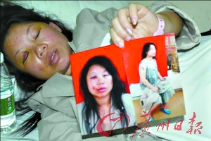 昨日,記者在松崗人民醫院見到卿女士,雖然事情已經過去了3天,但是卿女士還是顯得十分虛弱,全身布滿傷痕,眼睛周圍高高腫起。