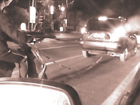 西祠網友“南京市心理危機干預中心”告訴記者,26日深夜23:48,他駕車回家路過南京市長江路文化藝術中心附近的時候,就看到那輛“超級暴強”的電動自行車,一位年輕美麗的女子騎著這輛電動自行車,可能是這輛電動自行車沒電了,所以不得不借力而行,以一根繩子與前面一輛寶馬越野車相連,在快車道上被拖拉著快速前行。駕駛寶馬車的是一位先生,寶馬車拉著電動車一路行駛,過路的司機看得心拎拎的,紛紛駕車避讓,而電動車上的那位女子似乎膽子頗大,不僅沒有害怕的感覺,臉上還笑嘻嘻的,真讓人佩服。