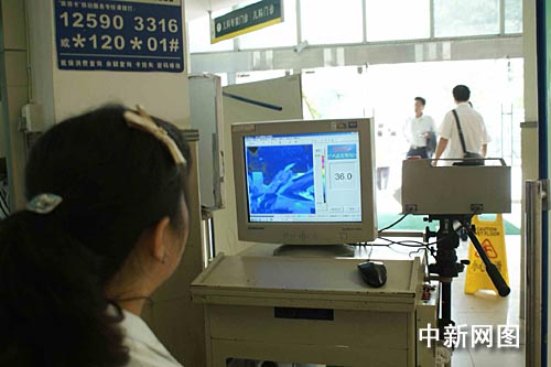 中新網重慶5月12日電 (曾理 杜遠)在成都確診中國內地首例甲型H1N1流感患者的當天,三軍醫大重慶新橋醫院在門診大廳門口增設紅外熱線測溫儀,篩查赴該院就診人群中的高溫患者。