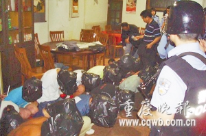 “白天搶,晚上偷,難道不睡覺?”黃桷坪派出所副所長張翼和辦案民警分析認為,再怎么瘋狂,人總要休息的。于是,九龍坡區警方調集40位民警,于7日早上突襲南紀門的那家小旅館,正在熟睡的33個犯罪嫌疑人一網打盡,犯罪嫌疑人中最小的15歲,最大的30歲。