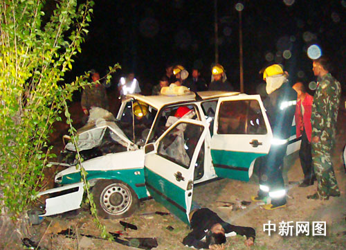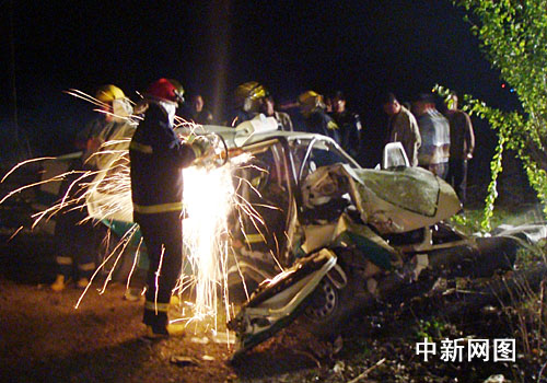 零時43分,雙鴨山市”119“指揮中心接到報警稱,雙七公路雙富村路段發(fā)生一起嚴(yán)重的交通事故,車上多人被困請求支援。記者從現(xiàn)場救援的尖山消防中隊了解到,消防官兵趕到事故現(xiàn)場發(fā)現(xiàn),一輛夏利出租車沖出公路撞到路旁的大樹上,駕駛室嚴(yán)重變形,現(xiàn)場一片狼藉,已有3人被救出送往醫(yī)院,仍有4名人員被卡在車內(nèi)。