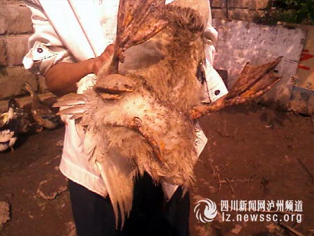王智昇,家住納溪永寧河邊,是納溪第一個吃低保的特困戶,平常以養鴨子為生,因他家中出現一只與鴨不同的鴨,該鴨全身白色,初見時不細看,未發現有何不同之處,經過仔細觀察后發現,該鴨確實與眾鴨不同,原來這只鴨子有四只腳,兩腳在地上行走,另外兩只腳隱藏在靠近尾部的背上,時隱時現,待主人將鴨子抱起,弄開尾部羽毛,才露出廬山真面目,隱藏的兩只腳清晰可見,形狀與行走的兩只腳沒有什么差異。區別僅僅是由于隱藏的兩只腳未進行功能鍛煉,行走只是顯得略微小心。