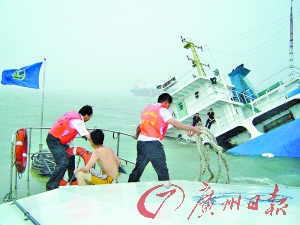 據廣州沙角海事處張杰副處長介紹,昨天下午4時許,該海事處接到報警稱“有船發生碰撞!”接警后,該海事處立即出動包括海特1115號、海特1114號共8艘船只趕往事發海域。7分鐘后,他們便趕到了事發海域,而后立即開展搜救落水船員行動。