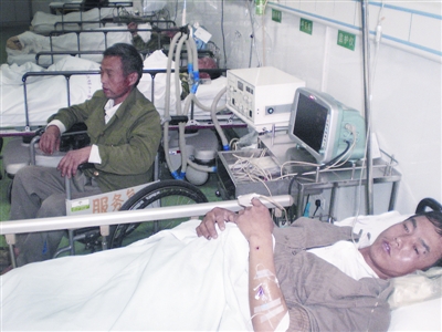 記者昨日中午1時許在市十一醫院急診室看到,4名農民工3人躺在急診室病床上、1人坐在輪椅上。送他們來醫院的工友付師傅說,他們30多個英山縣民工在漢口火車站附近的航天花園4期工程做木工,完工后按工作量計算工錢,從今年2月6日至5月16日,他們的活已做完,工錢約25萬元,卻一直沒有拿到手。