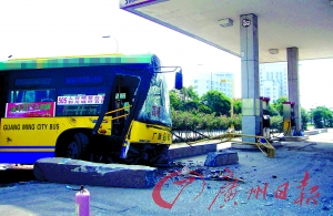 據(jù)加油站的一位員工回憶,事發(fā)時,站內(nèi)正有一輛小車在加油。突然,只聽“轟隆”的幾聲巨響,一輛505路公交車就沖了進來,并當場撞斷路燈直奔加油站。這時,他的一位正在為小車加油的工友看到被撞斷的燈柱就要砸到自己,嚇得立即丟下加油槍,一個飛身躲到了一旁。“幸虧躲閃及時,否則會被路燈砸傷。”