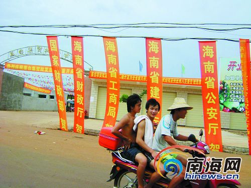 臨高美臺集貿批發市場懸掛的“國家財政部賀”等條幅