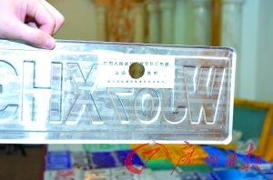 第二步:從溫州購買制假車輛號牌模具及半成品,按買家需求的車輛牌號和數量將半成品加工成假車輛號牌。