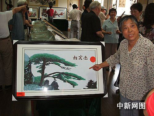 中新網(wǎng)鎮(zhèn)江七月一日電 (李君 王致同) 這是一幅長(zhǎng)一米、寬六十厘米的《迎客松》圖,遠(yuǎn)看似乎是照片或油畫,近看確是十字繡品,圖上繡成的翠柏勁松,傲然挺立,引人入勝。令人們難以置信的是,繡品作者竟然是鎮(zhèn)江市八十高齡老翁徐菊生。昨天,作為老人獻(xiàn)給共和國(guó)六十華誕的這幅十字繡品《迎客松》,在鎮(zhèn)江市老年活動(dòng)室“露臉”,令人驚嘆不已。