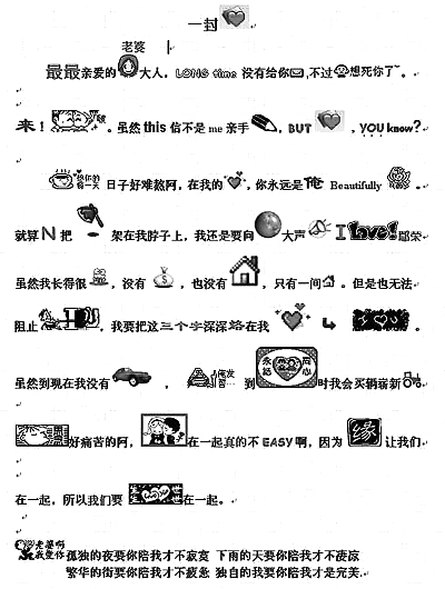 MM、菜鳥、恐龍、粉絲、BT……這些俏皮的“網語”一下子得到了很多年輕人的認同!拔医洺0选異邸謱懗伞浮顅e’,里面有日文和英文,它能直觀形象地表達‘愛’的含義。”上海市第四中學初三學生君君說,她和同學在網上聊天時用的是“火星文”,她的QQ個性簽名也是“火星文”,她認為這樣很可愛,也很有個性。