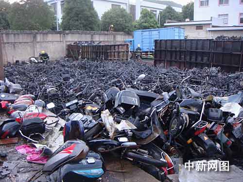 中新網(wǎng)寧波7月8日電(何蔣勇 歐陽峰)7日下午5時50分許,位于浙江省寧?h興寧中路45號的寧海縣物資再生利用有限公司發(fā)生一起火災(zāi),濃煙沖天達(dá)百余米高,整個寧?h城都能清楚地看到黑煙滾滾。當(dāng)?shù)叵啦块T先后出動四輛消防車、近四十余名官兵參與火災(zāi)撲救,約40分鐘后成功將大火撲滅,但是該公司露天堆場內(nèi)近百輛廢舊摩托車被大火燒成骨架。