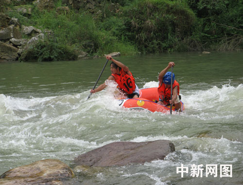 中新網成都7月11日電(張琳琳)7月11日,2009中國·都江堰(虹口)國際漂流節在都江堰市虹口景區拉開序幕。漂流節的的重頭戲是“自然水域漂流大賽”,來自美國、英國、澳大利亞、捷克、荷蘭的5支外國隊伍及遼寧、貴州、北京等7個省市的11支隊伍,總計45名運動員參加了比賽。比賽的項目為雙人橡皮艇長距離漂流,最終來自英國、捷克的代表隊分別獲得冠軍、季軍,中國貴州的2名業余選手獲得亞軍。