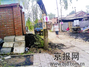 在金盞南村,一處窄小巷口路邊掛著一塊畫著紅色十字標志的硬紙殼牌子,與村子里其他地方掛著的“高價收廢品”牌子相比,這塊牌子似乎更加低調,連個漢字都沒有。
