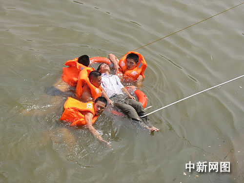 7月25日,周六休息日,上午10時23分,南雄市公安局指揮中心接到群眾報警稱:在南雄市區沿江西路有人跳河自殺。該局特警大隊帶班領導張朝東副大隊長立即帶領備勤民警鄧文軍等人火速趕往現場,同時用對講機指示正在附近巡邏的執勤民警前往救援。
