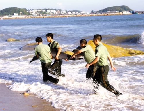 16時40分左右,南澳縣云澳邊防派出所官兵和漁政人員趕到海豚擱淺的云澳赤石灣,只見烈日之下,四只大海豚正拼命用尾鰭拍打沙灘,洶涌的海浪不斷將海豚沖向礁石,致使海豚渾身傷痕累累,情況危急。海豚體長均超過兩米,重逾100公斤,最大的一只體重達(dá)300公斤。